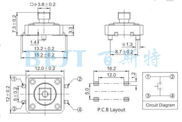 輕觸開關TS-1103CW參考圖紙: