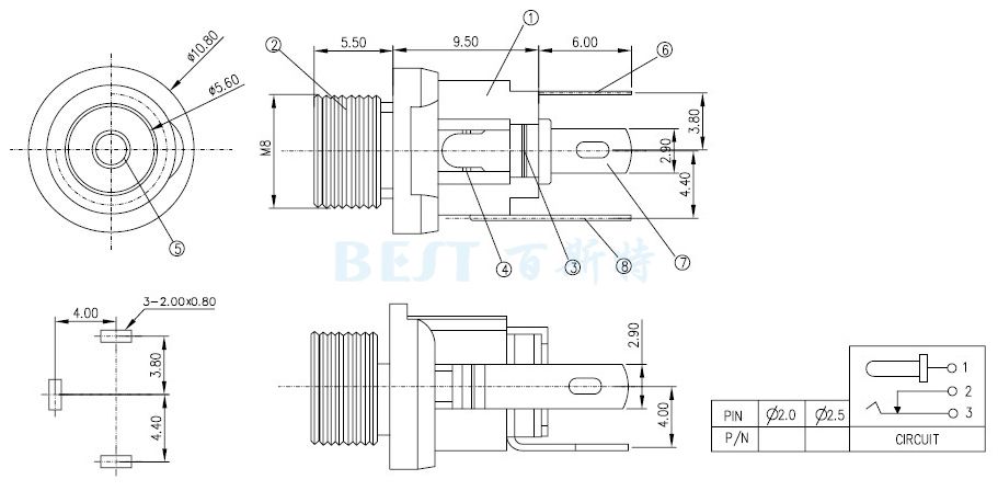 dc電源插座dc-025M額定值是dc30V 0.5A,插入力度是3到20N,是插件dc電源插座。針芯直徑2.0/2.5mm,dc電源插座的孔徑尺寸是5.6mm,兩個插腳。有帶螺紋和不帶螺紋兩種。dc-025M主要應用于電視機、組合音響、音箱、收錄機、計算機等家用電器電子儀器設備。例如高清電視、電腦、DVC解碼板、電子稱、電飯煲、多媒體通訊、空調等。