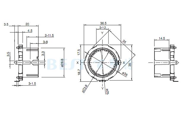 EC35A編碼器也可稱為環形編碼器、中空編碼器、阿爾卑斯編碼器等,有金屬軸/絕緣軸/貫通軸/中空軸等類別之分。旋轉柄的直徑為28.8mm,高度 20mm,因其本體厚度4.5mm的薄型化和良好的操作感覺,現大量使用于汽車音響的音量調節、空調溫度調節、洗衣機功能選擇、電磁爐、微波爐、烤箱溫度 調節等產品上面。